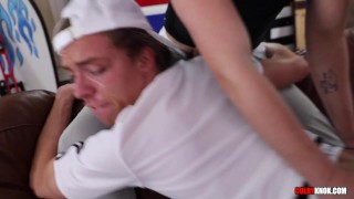 מילף בלונדינית מתחננת להזדיין עם גברים צעירים